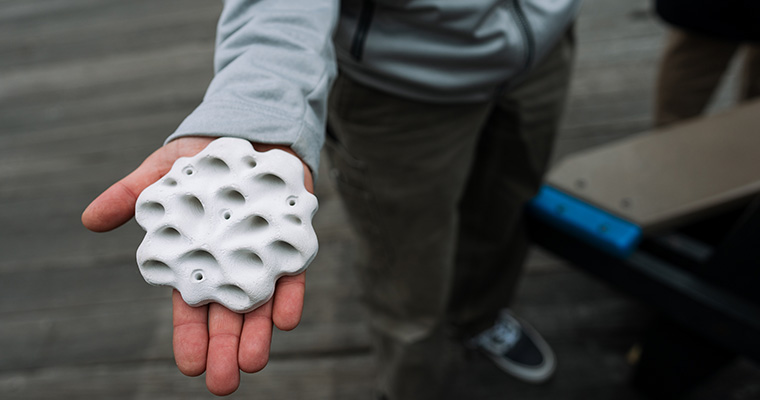 The modular panels are designed for “bringing life back to built structures,” said Katherine Dafforn, associate professor at Macquarie University and cofounder of the Living Seawalls project. These habitat units feature various bumps, ridges, and holes that mimic natural shoreline ecosystems like rock pools and crevices. They will be fitted in scalable mosaics onto existing seawalls in Boston Harbor. The goal is to increase the habitat area available for critical marine life, such as shellfish, tunicates, and seaweed. They will also protect marine life from elevated temperatures and predators.